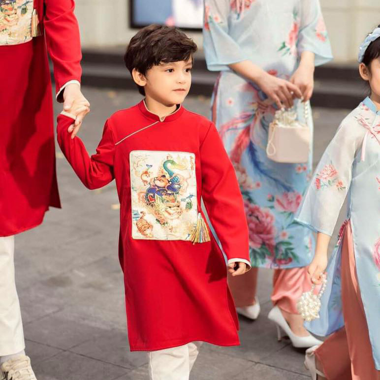 Size áo dài cho bé từ 1 tuổi đến 14 tuổi, từ 9kg đến 46kg, thoải mái cho cả các bé lớn tuổi teen lứa tuổi khó chọn size mua quần áo trẻ em.