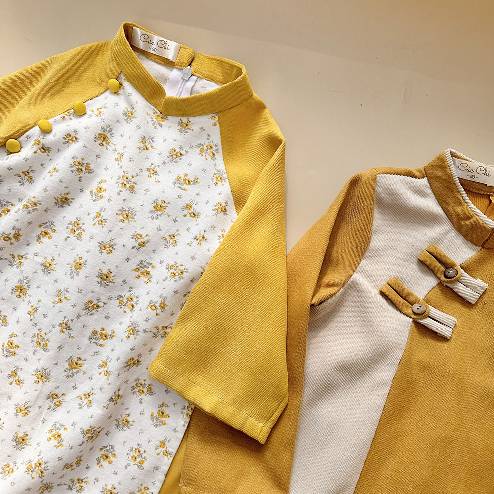 Áo dài cách tân kết nút cho bé trai xinh xắn dễ thương