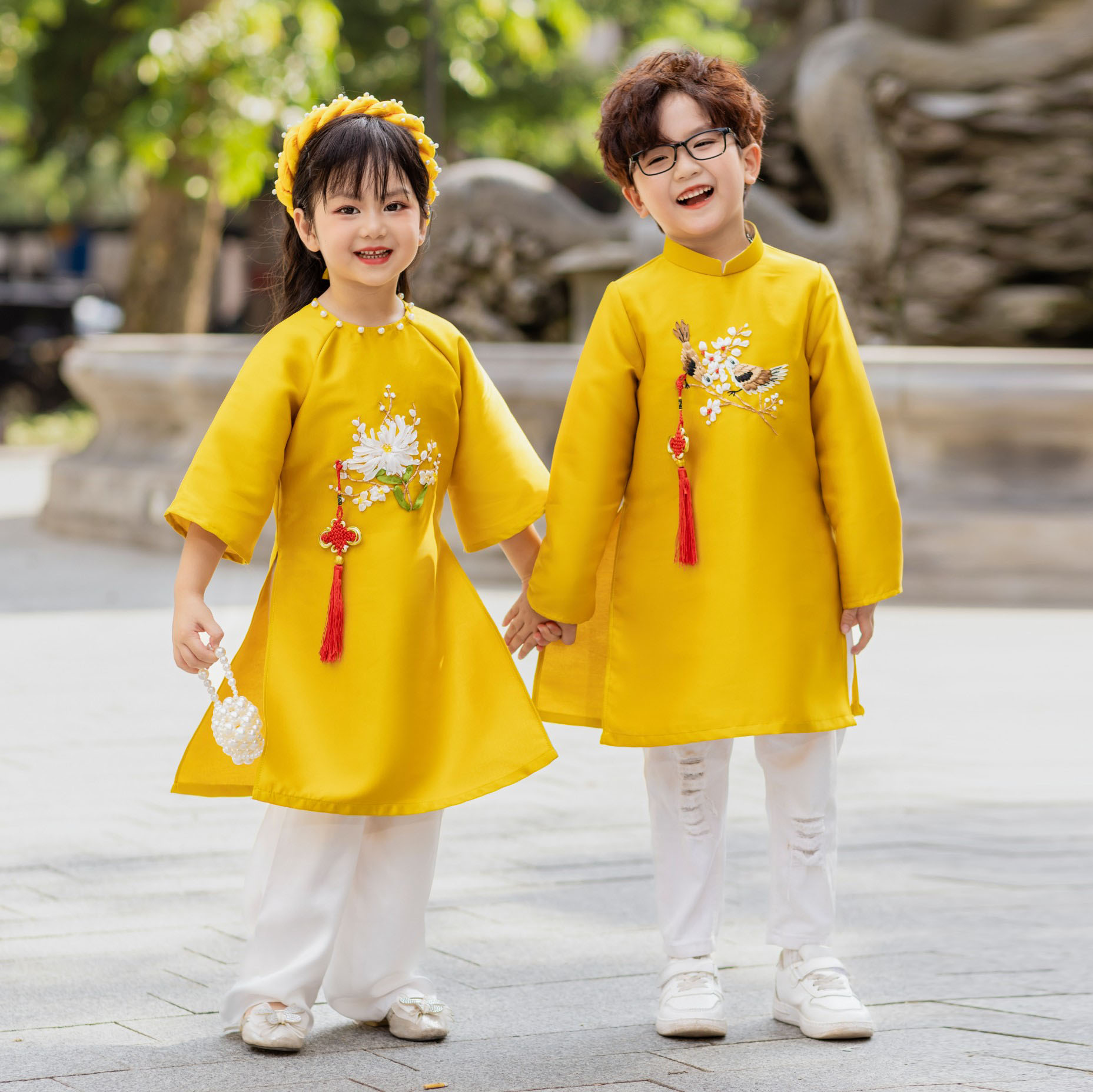 Mẫu áo dài trẻ em Ý Xuân, mang sắc Xuân tươi vui đầy màu sắc và cực kỳ sang chảnh.