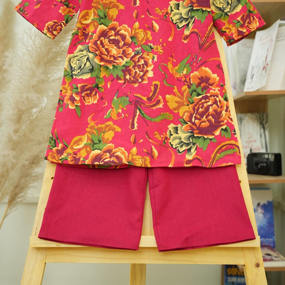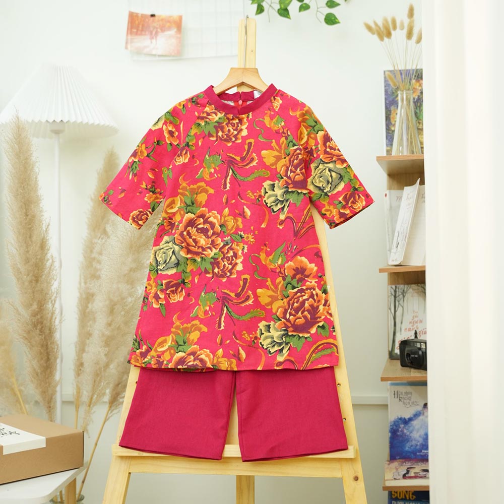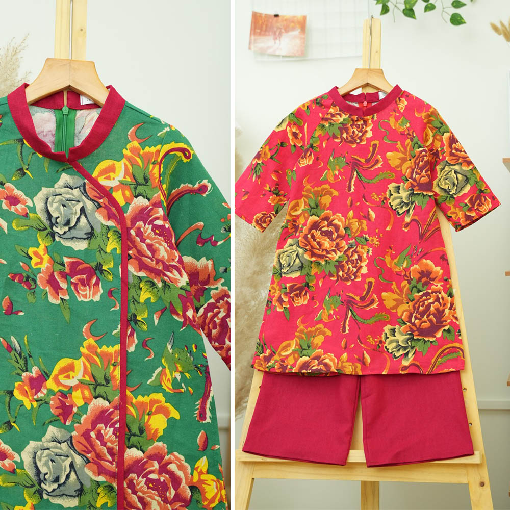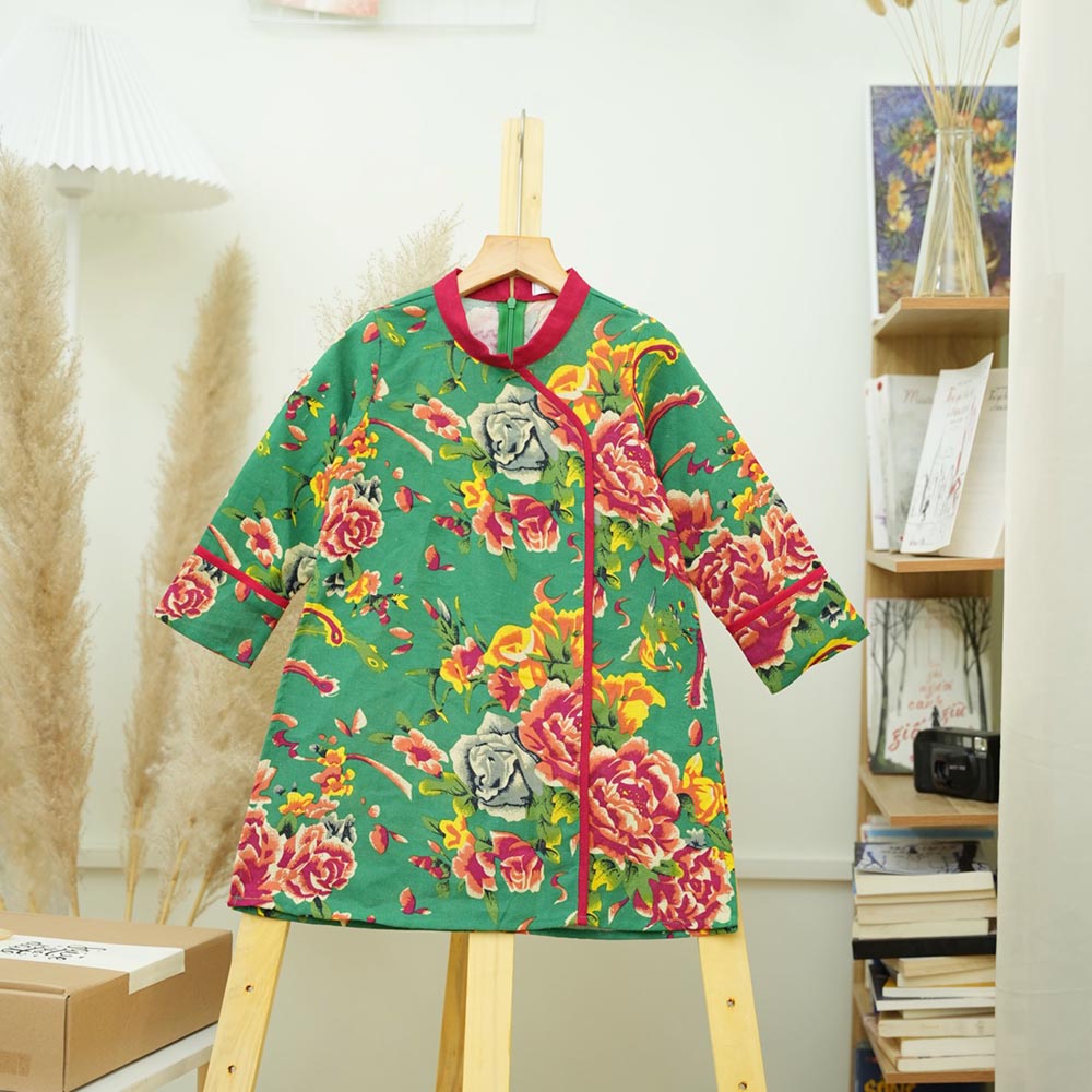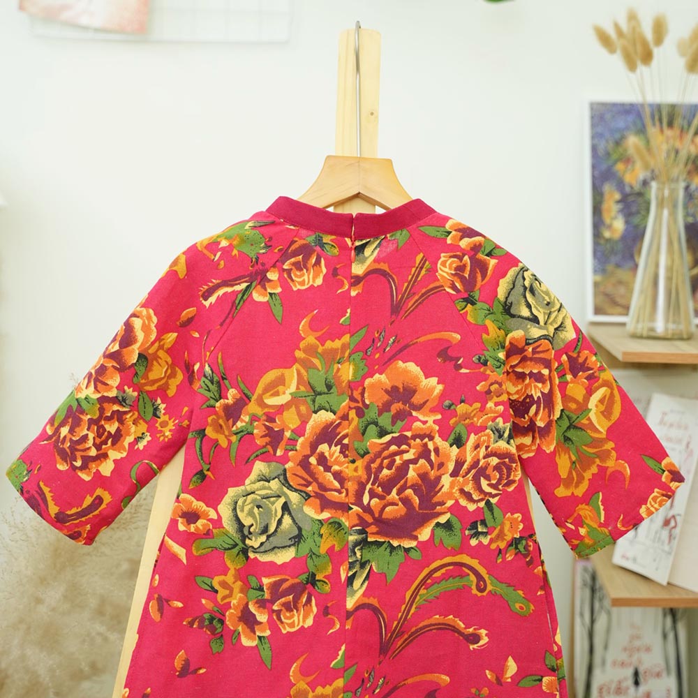 Áo dài chăn công bé trai bé gái, chất liệu Linen tự nhiên, thân thiện môi trường, mềm mại an toàn cho bé.