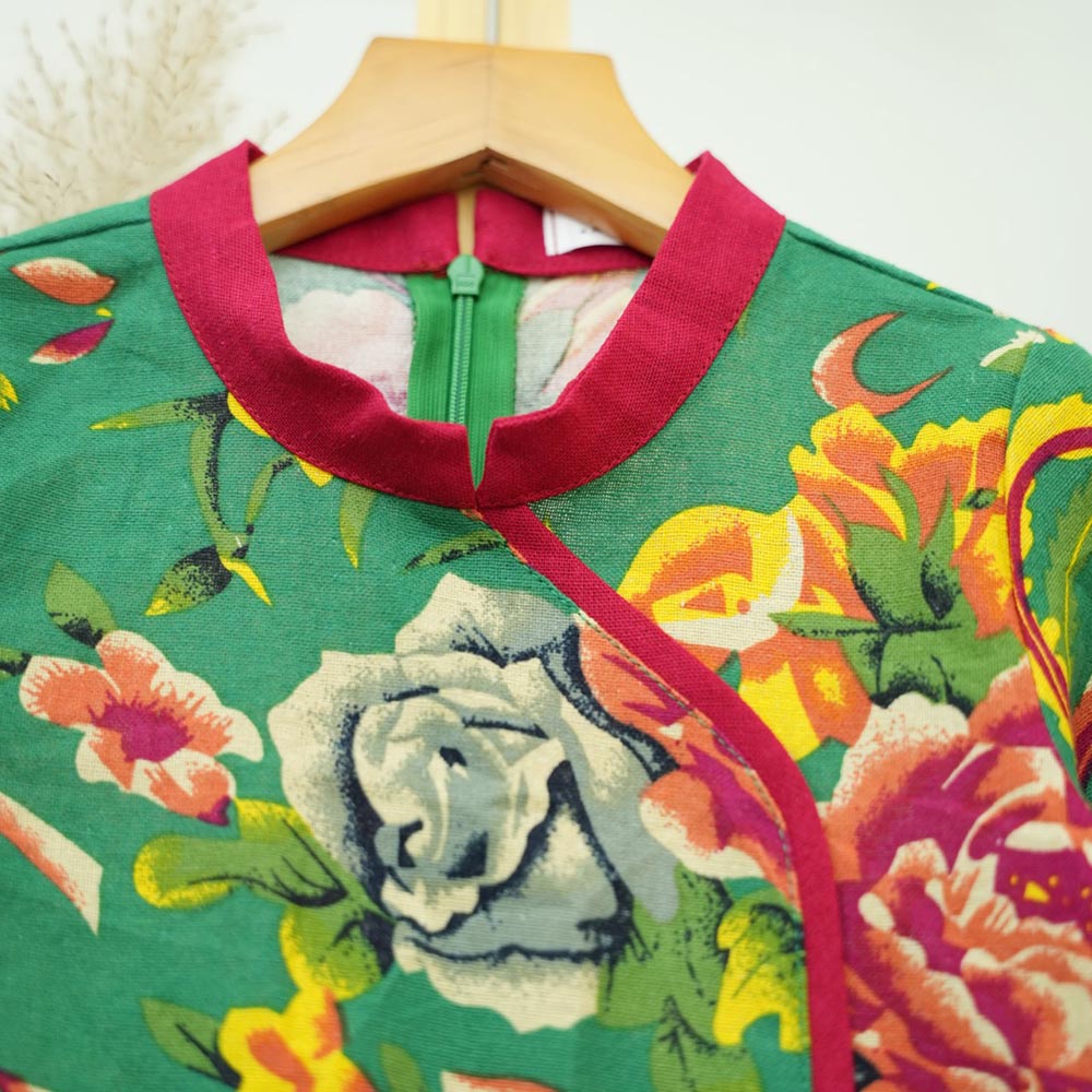 Hoạ tiết chăn công, tấm trải bàn, giấy gói kẹo của những ngày xưa cũ, lại đang hot nhất hiện nay. Hàng may chuẩn nét. Các đường may được cuộn sạch, phối tinh tế