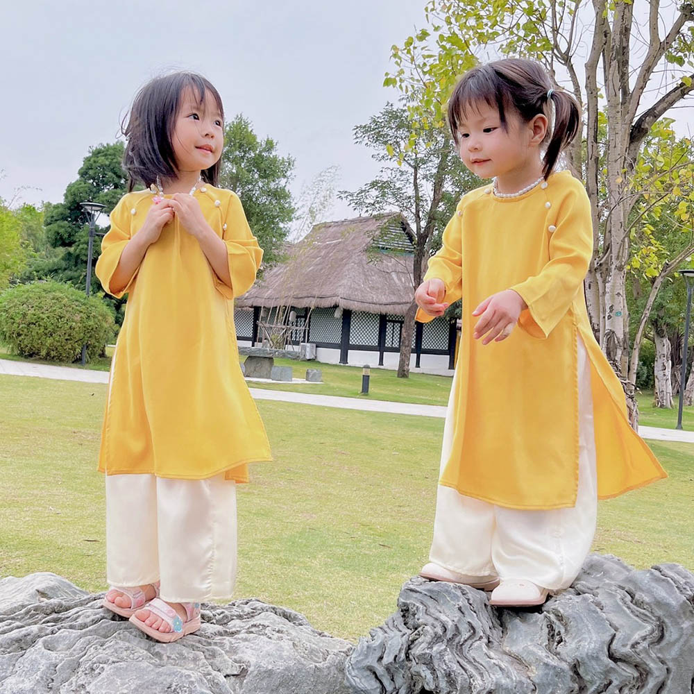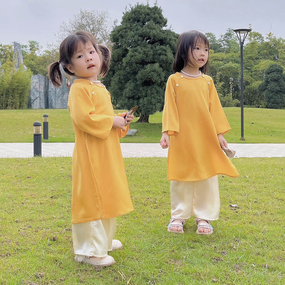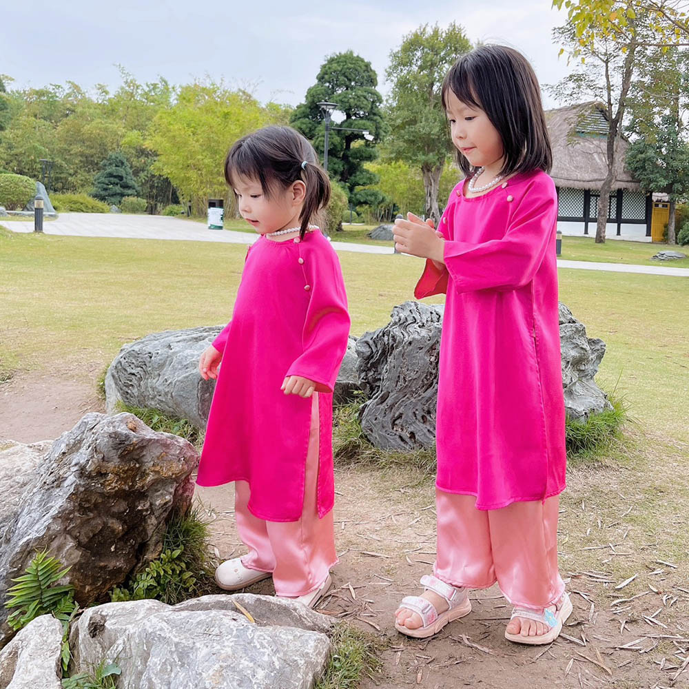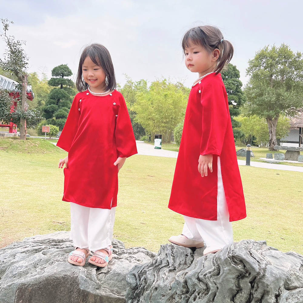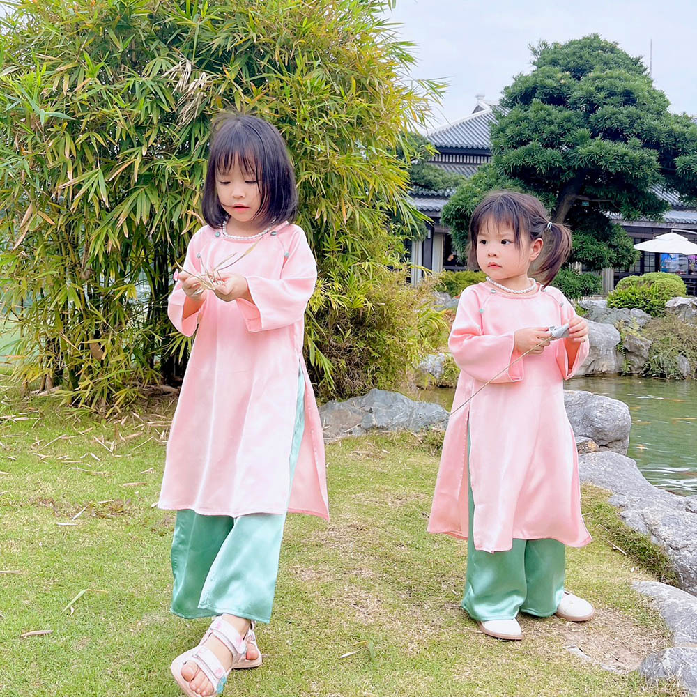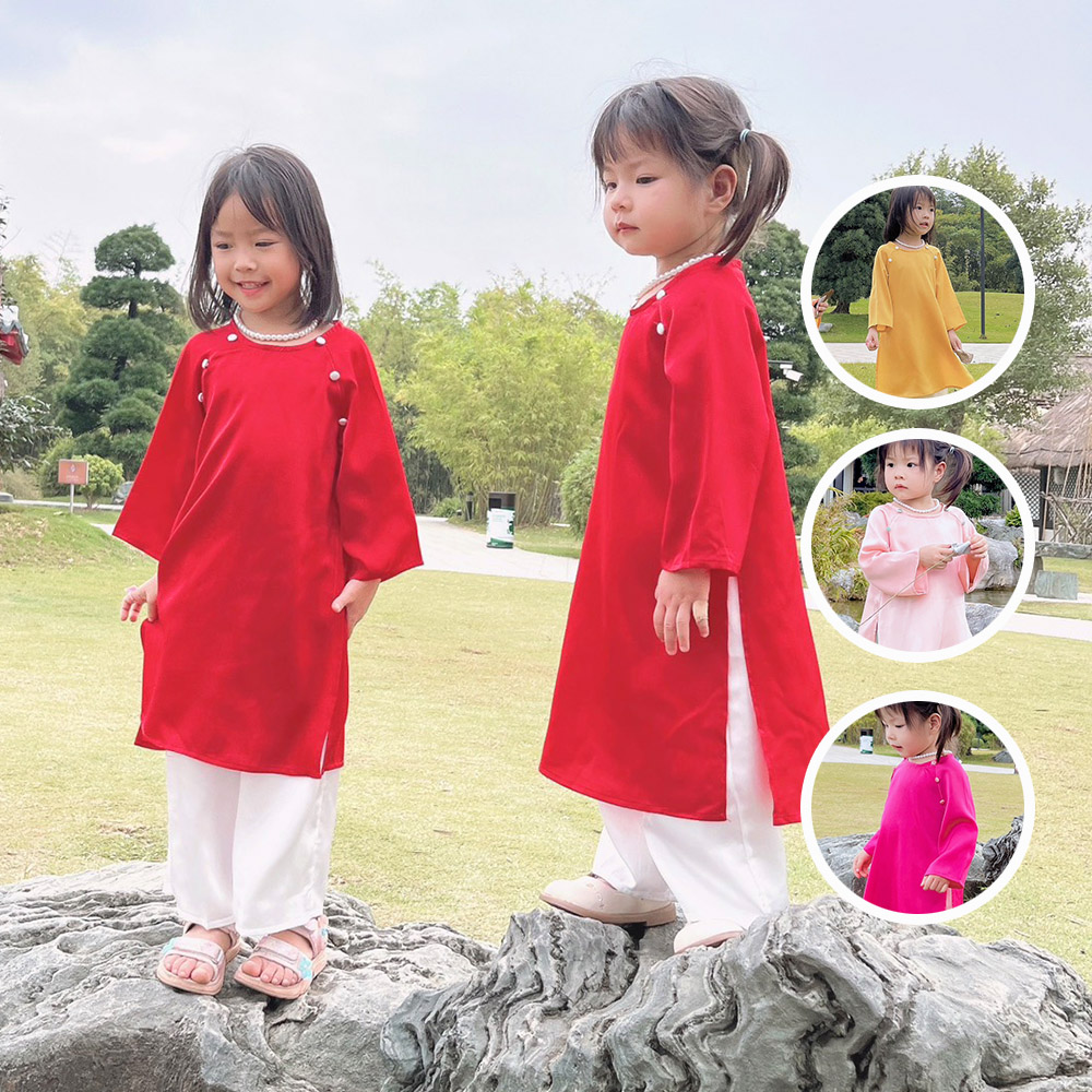 ÁO DÀI BÉ GÁI LỤA KÈM VÒNG NGỌC TRAI - GIÁ SIÊU TỐT