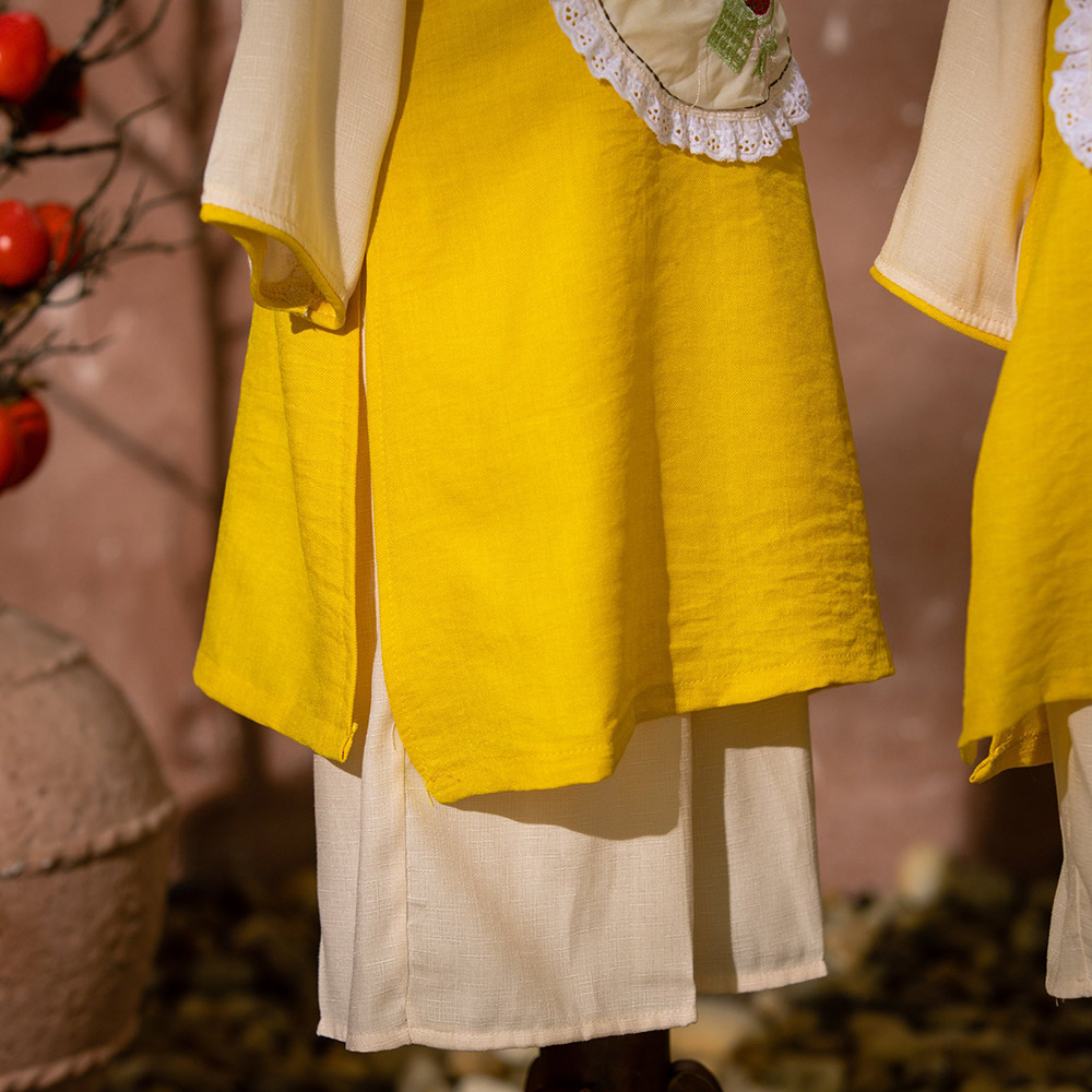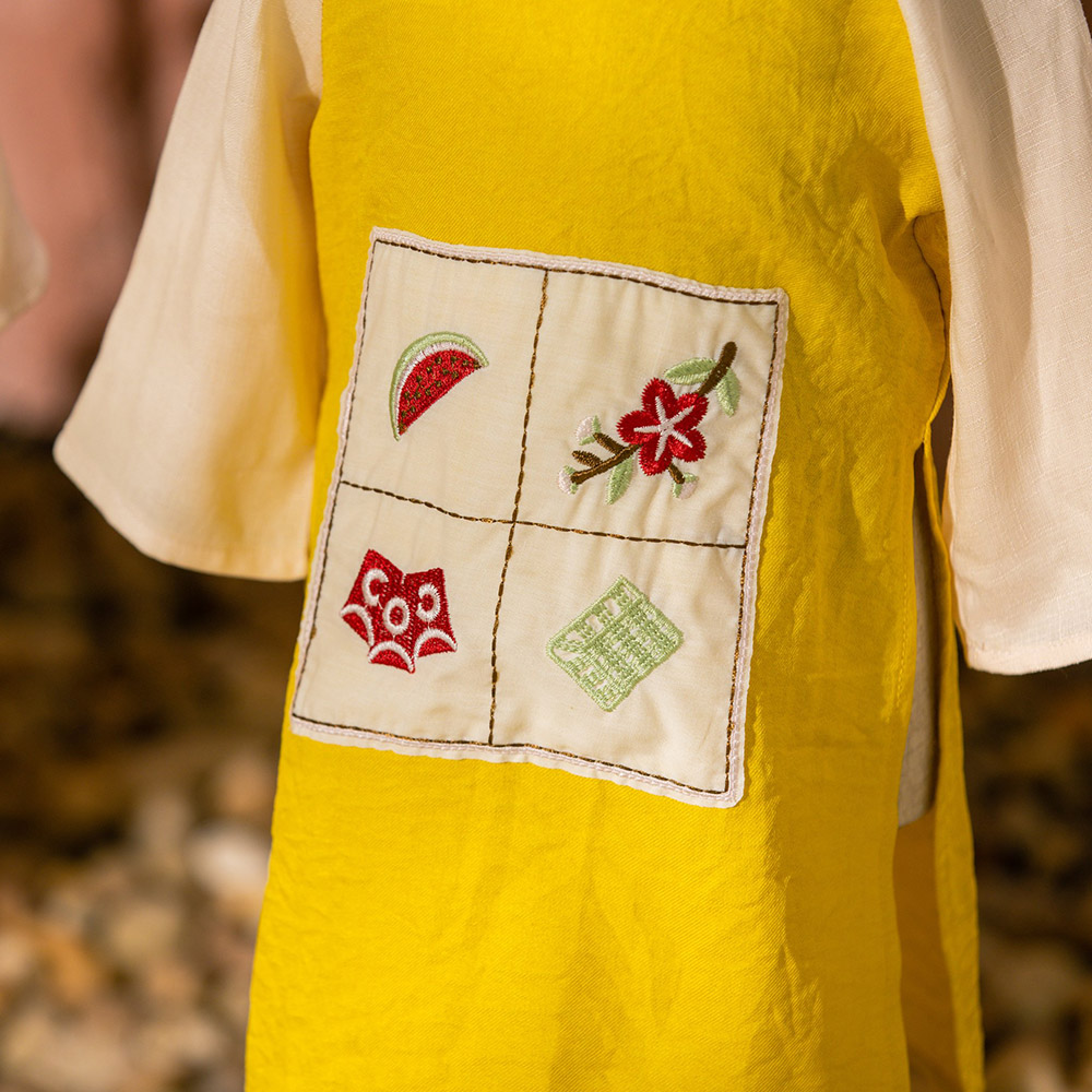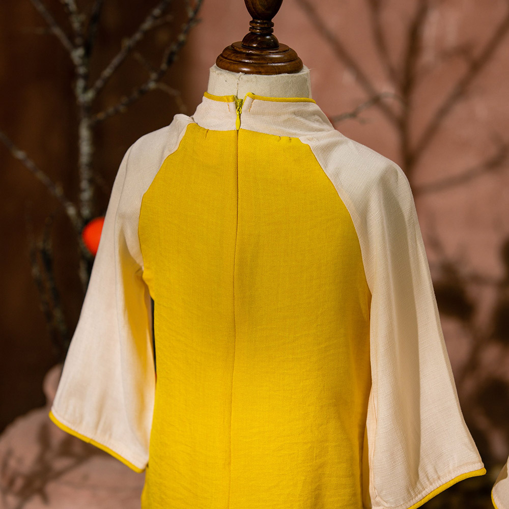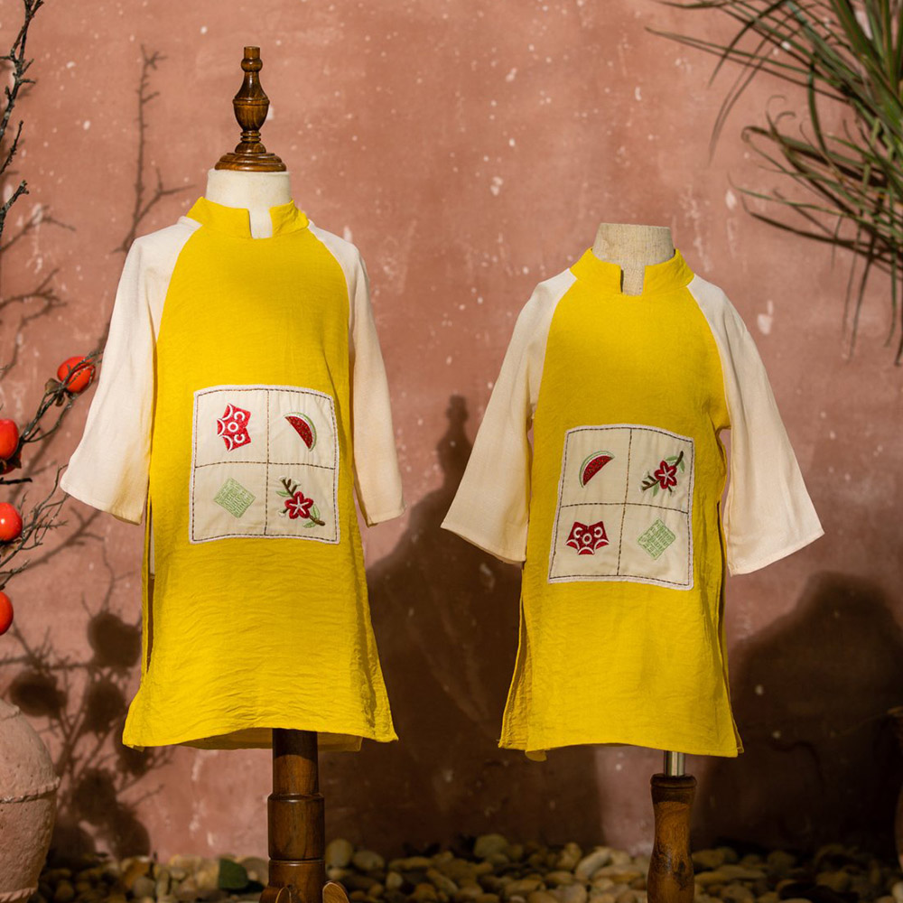Rất đẹp và sang nhé cả nhà. Hoạ tiết thêu xinh xắn. Nhìn là thấy hoa mai rộn ràng đón Tết sang rồi. hihi. Chất liệu đũi phối lụa vân mây mềm mại, mịn, mát. Phù hợp với thời tiết cả 2 miền Nam Bắc ạ