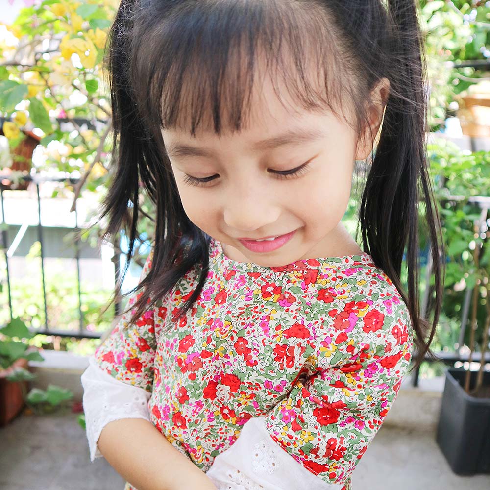 Áo dài vải hoa nhí dư hãng Liberty đáng yêu cho các bạn nhỏ.