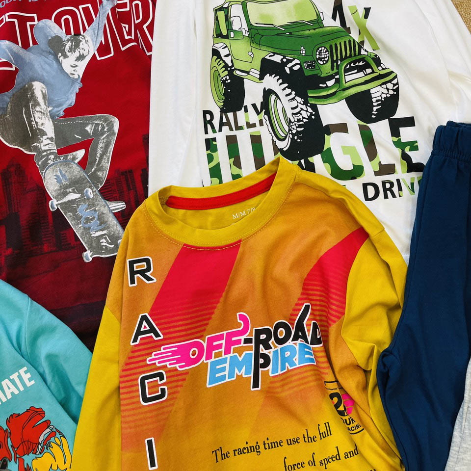 Chất cotton 100%, vải và bo cổ xịn đẹp, hình in bao đẹp, giặt thoải mái.