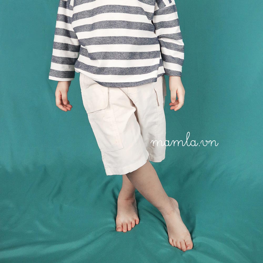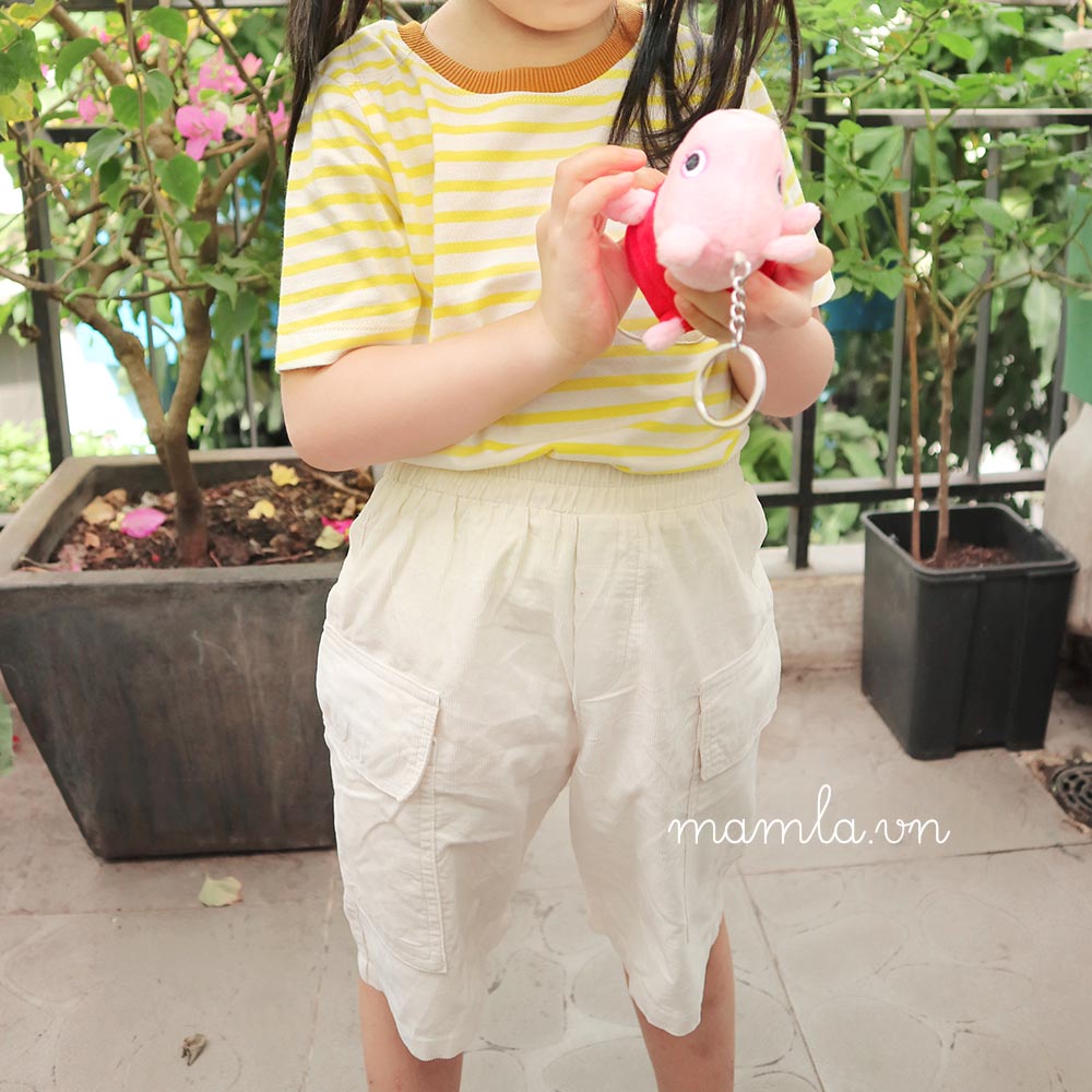 Quần short vải nhung tăm mỏng, túi hộp tiện dụng cho Bé.