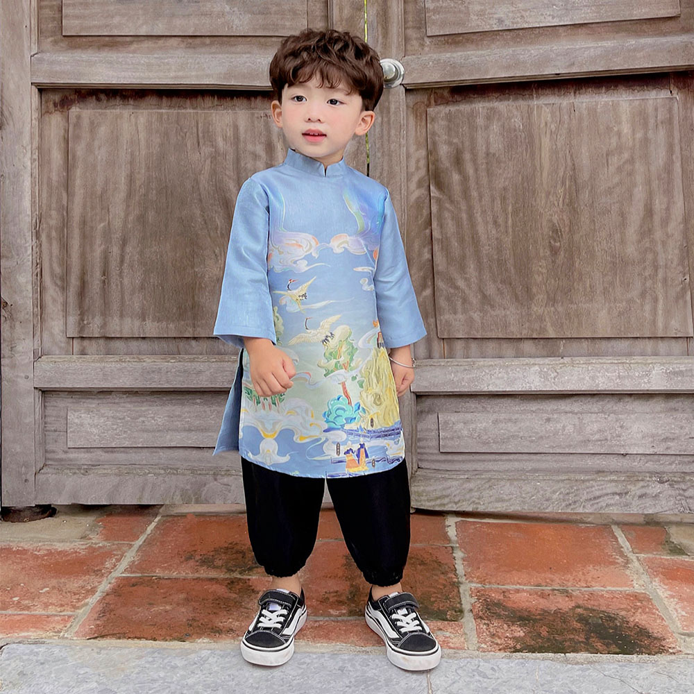 Set Gồm: Áo dài bé trai + quần bo chun bé trai