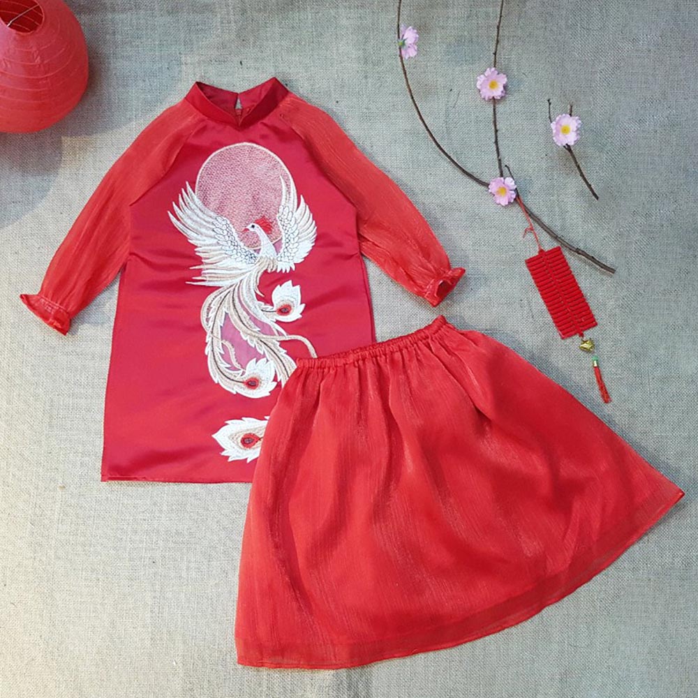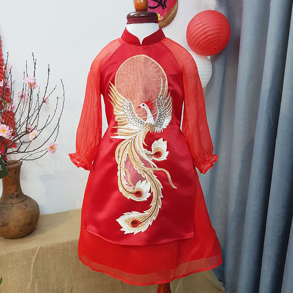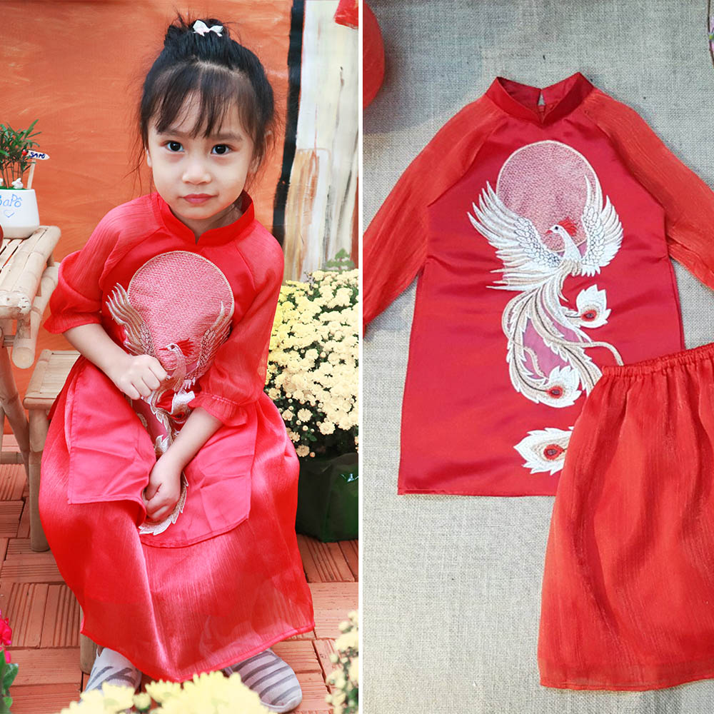 - Áo dài bé gái thiết kế điệu đà phối tay voan lưới xước bo nhẹ lạ mắt cùng tùng váy bồng bềnh xúng xính.