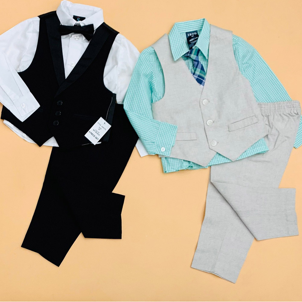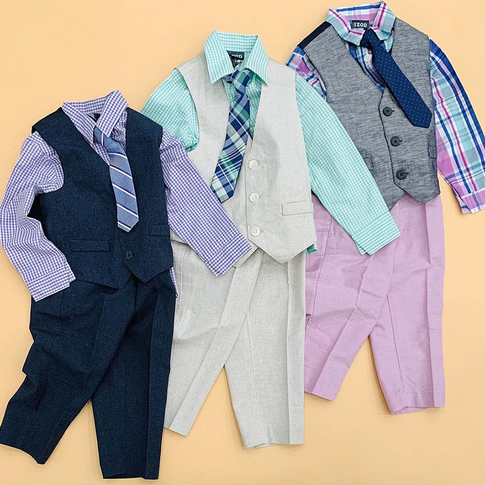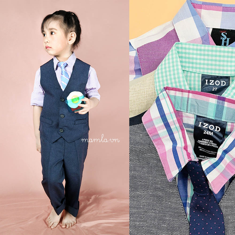 Set bộ Vest bé trai 4 món (áo sơ mi + ghi lê + cavat + quần tây) IZOD + Steve Harvey.