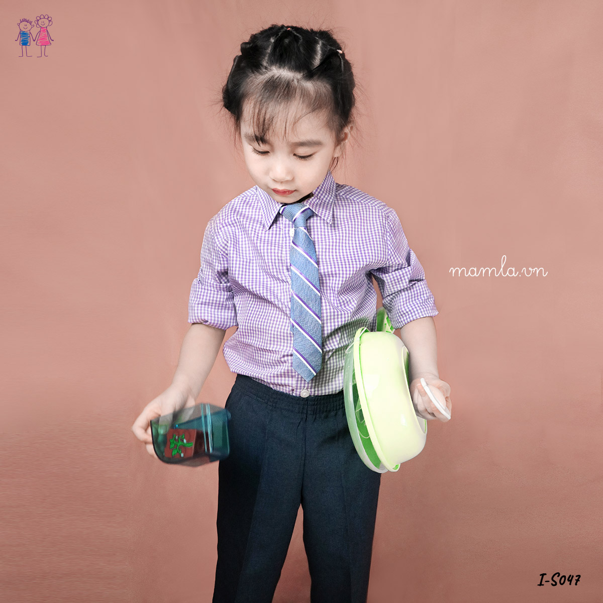 * Áo sơ mi: chất vải kate mềm, mịn, cấu tạo sợi vải thoáng mát, cho bé thoải mái khi mặc.