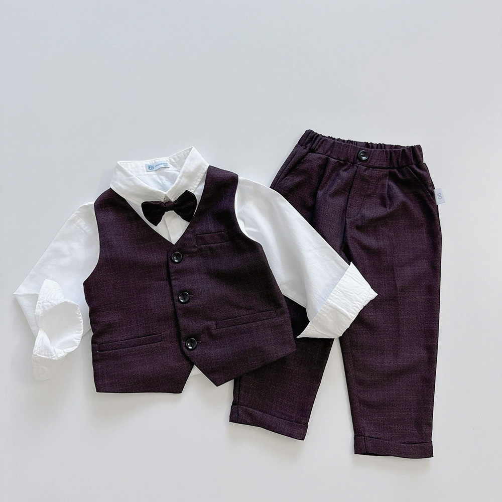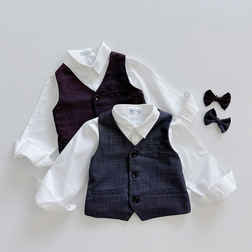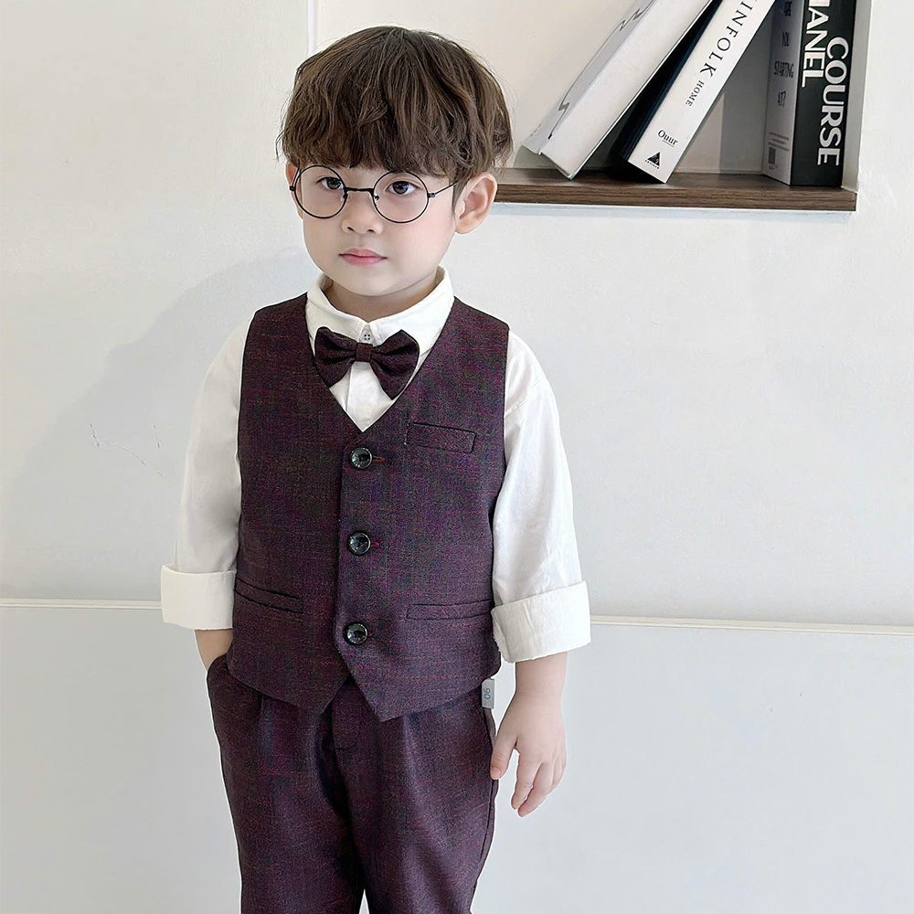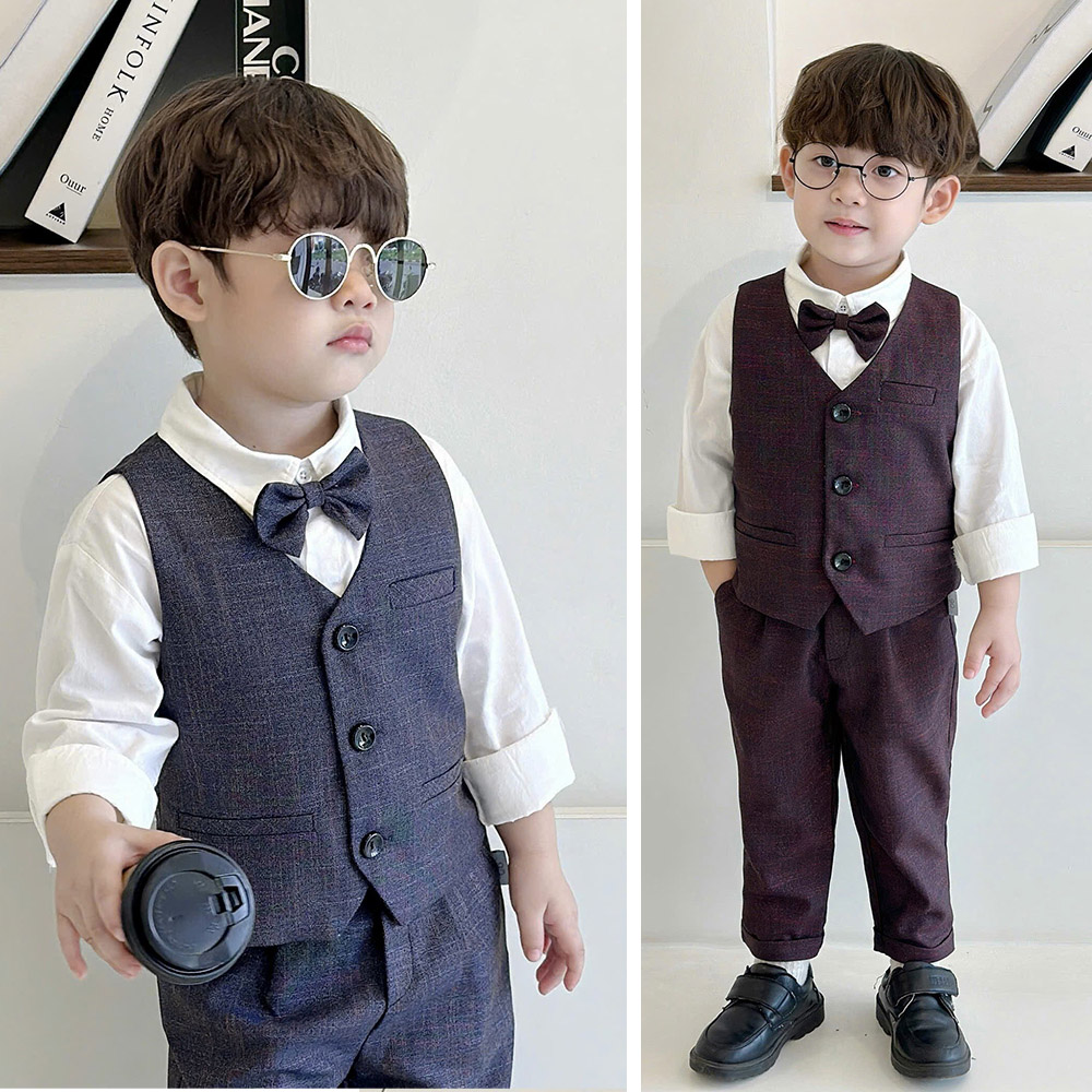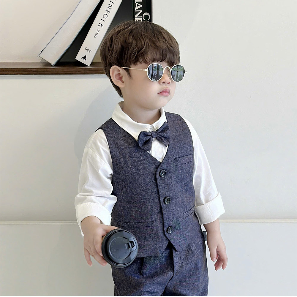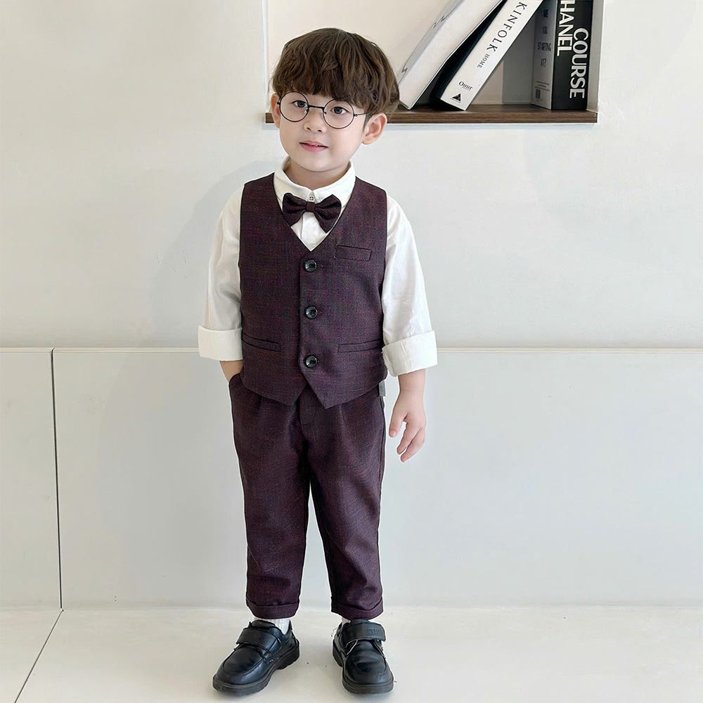🥑 Thiết kế set 4 chi tiết gồm áo gile, sơ mi trắng, quần baggy gấu lơ vê kèm nơ cổ sang trọng, siêu bảnh trai