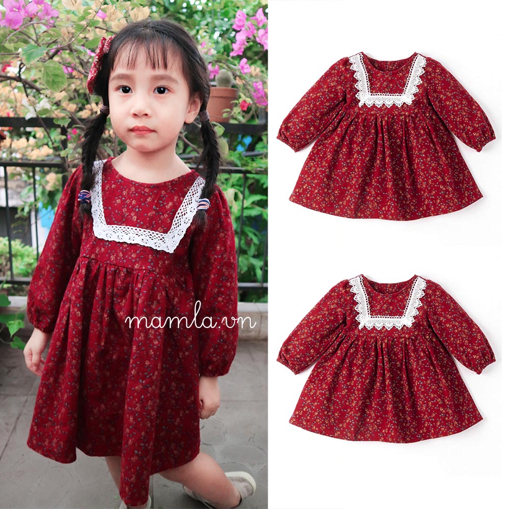 Váy dài tay bé gái vintage lấy cảm hứng từ nét đẹp ngây thơ, nhẹ nhàng của các bé gái, đầm mang phong cách Hàn quốc, các chi tiết và màu sắc basic.