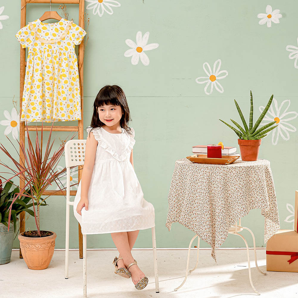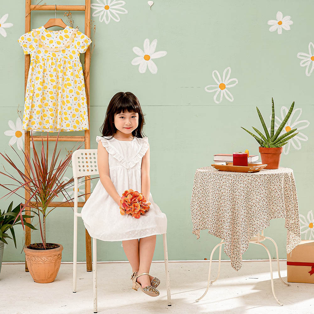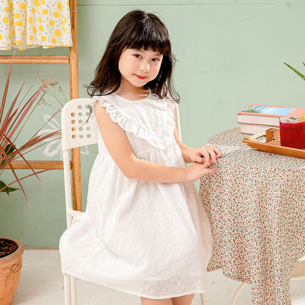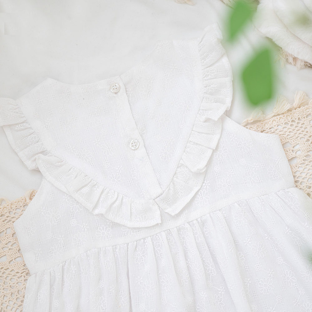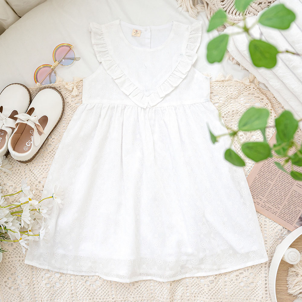 Váy đầm bé gái thêu chìm màu trắng vải xô đũi mềm mịn mát MamLa (10-42kg)